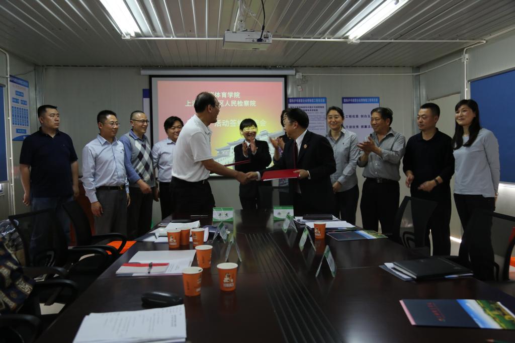 本网讯 4月18日,为保障国际乒联博物馆和中国乒乓球博物馆工程建设及“十三五”基建工程建设“工程优质、干部优秀”,我校与杨浦区人民检察院举行了创“双优”签约仪式。党委副书记、纪委书记詹萌、副院长平杰和杨浦区人民检察院副检察长、反贪局局长徐进出席签约仪式。