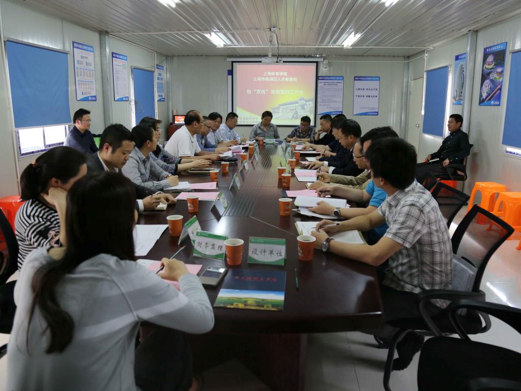 徐进指出,杨浦区人民检察院和上海体育学院开展创“双优”活动以来,在乒乓球训练馆建设过程中开展了形式多样的创 “双优”活动和职务犯罪专项预防活动,取得较为显著的效果。他强调,乒博馆工程项目时间紧、任务重,项目特殊、意义重大,他希望各方明确要求和责任,把创“双优”的目标融入到项目建设的各个块面和各个环节中,在建设世界知名、质量优秀的“精品工程”同时,建设“廉洁工程”。他还介绍上海市近年来工程建设领域发生的职务犯罪案件和杨浦区创“双优”活动情况。