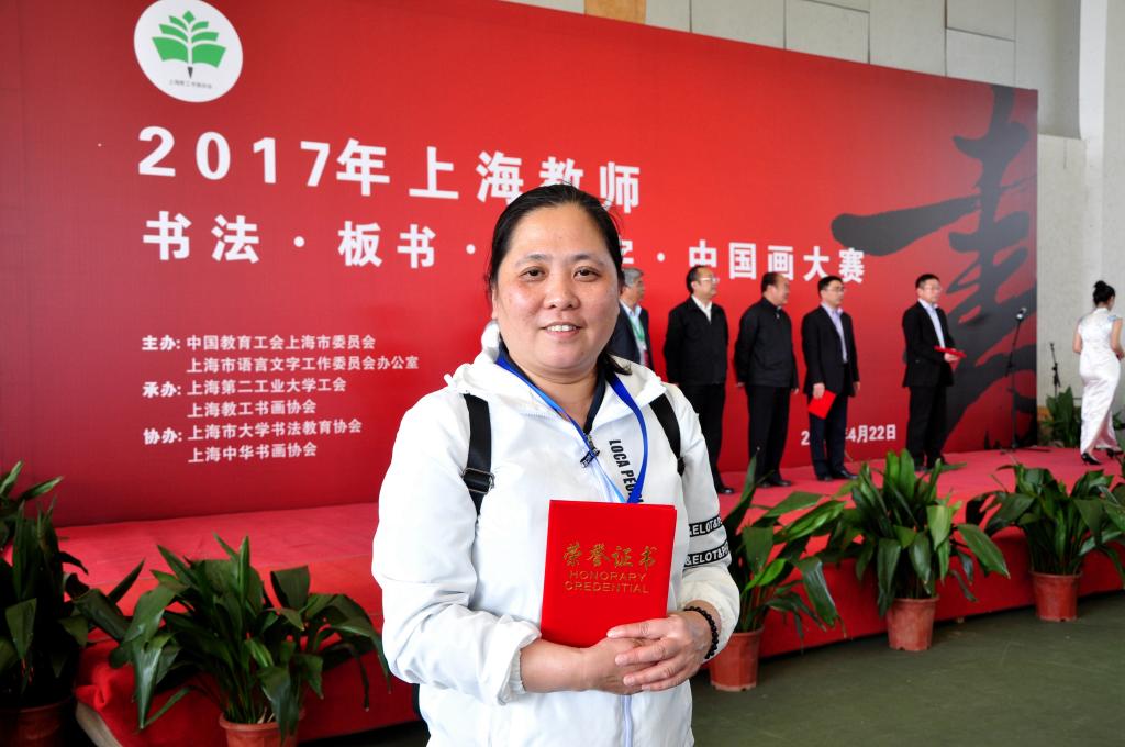 本网讯 4月22日,2017年上海教师“板书·书法·钢笔字·中国画”大赛在上海市第二工业大学举办。本次大赛是由中国教育工会上海市委员会主办,我校选拔出6位教师作为代表,在领队、校教职工书法协会会长李蔚老师带领下参赛。