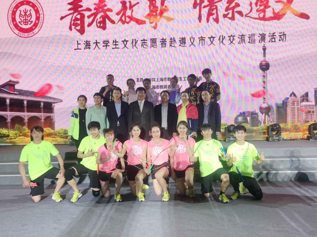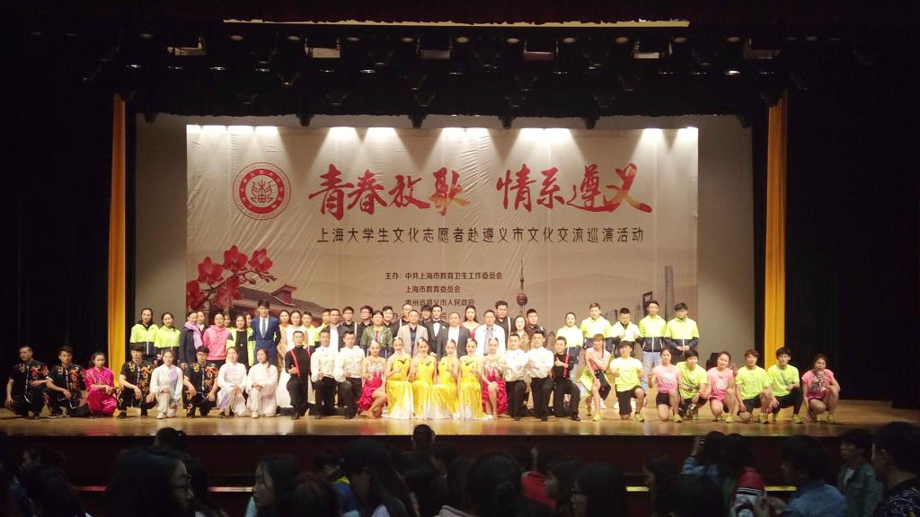 本网讯4月24日至28日,我校17名师生应上海市教卫工作党委、市教委邀请,与上海多所高校的大学生文化志愿者近八十人组成艺术团,赴贵州遵义开展“青春放歌情系遵义”文化交流巡演活动。