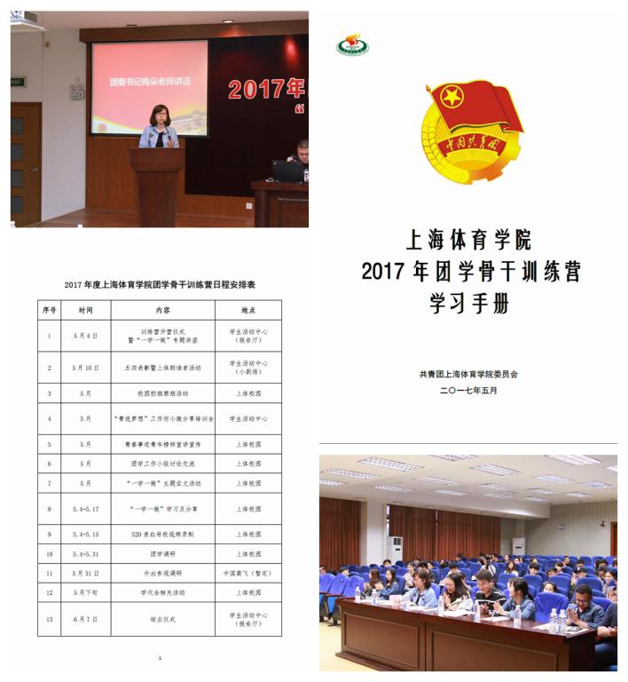 本次训练营从各学院推荐选拔了87名团学骨干,围绕全国、上海市关于高校思政工作会议精神、中央群团工作会议精神、高校共青团改革、学生会组织改革等方面,将开展“一学一做”教育实践、“一学一做”主题征文活动、团学实务培训、校园调研、“上体朗读者”、校园控烟活动、520表白上体等系列活动,深入培育和践行社会主义核心价值观,激发青年团员和基层团学组织的活力,推进从严治团工作,推进我校团学干部队伍建设,切实增强团学干部的群众性、政治性和先进性。