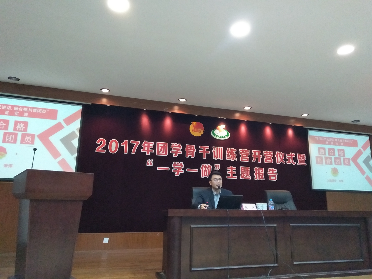 本网讯 5月4日,我校在学生活动中心报告厅举行2017年团学骨干训练营开营仪式暨“一学一做”主题报告,特别邀请了上海市青年管理干部学院(上海团校)副院长张恽为团学骨干上了一次生动的团课。校团委书记、学工部副部长梅朵、团委副书记陈鸿及各团总支书记参加了本次开营仪式及主题报告。