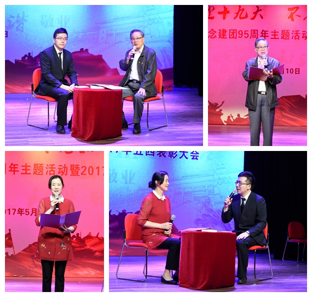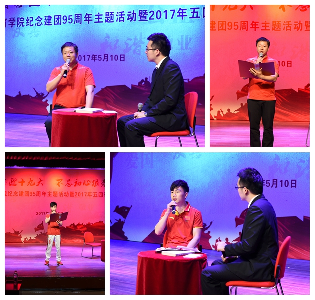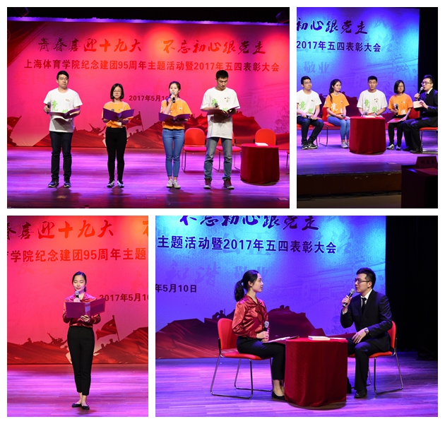5月10日下午,我校在小剧场举行纪念建团95周年主题活动暨2017年五四表彰大会,会上进行了上体朗读者之最美青春故事主题活动。本期朗读者由绿瓦人生、青春梦想、责任担当三个篇章构成,邀请了校党委副书记、副院长陈晓峰和原校党委书记、老教授协会会长胡爱本出席活动。“上体朗读者”着力于将青春的故事融入到活动中,将不同时代、不同特征的典型人物的最美青春故事和回忆通过访谈、朗读引起师生们的共鸣,传承历史,继承上体传统,发扬上体精神,弘扬青年使命;用这样一种润物细无声的方式,将思政教育与第二课堂活动结合起来,用“朗读者”这一适合青年流行话语、易于青年接受的方式,倾听青年的心声,放飞青年梦想。
