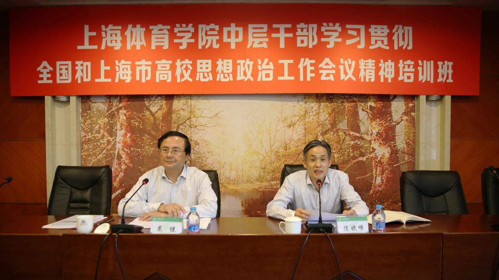 本网讯 5月11日下午,我校中层干部学习贯彻全国和上海市高校思想政治工作会议精神培训班开班仪式在图文信息楼第二会议室举行。党委书记戴健出席开班仪式,并作题为《增强政治意识强化政治担当 全面加强和改进新形势下学校思想政治工作》的主题报告。仪式由党委副书记、副院长陈晓峰主持。