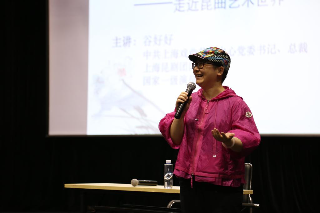 本网讯 5月11日,中共上海戏曲艺术中心党委书记、总裁,上海昆剧团团长,国家一级演员谷好好老师做客武术大视野,黑匣子剧场为上体师生带来了一场精彩的讲座。此次讲座是由武术学院和体育新闻传播与外语学院联合承办,读书俱乐部协办。