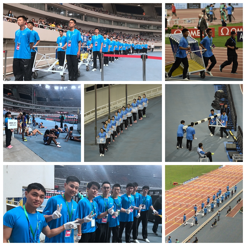 而到了钻石田联的正式比赛中,所有的“小火炬”全都准时来到相关岗位,按质按量的完成了志愿服务,为了给运动员提供最及时的服务。发令组的同学保持着整齐优美的姿势在场地为运动员提供提篮服务,三小时的高强度工作下,大部分的志愿者甚至磨破了脚,但她们依然秉承着“小火炬”的服务准则,将志愿服务坚持到最后一刻;场地器材组和场地热身的同学,在赛前赛后第一时间摆放和收拾器械,保障了钻石联赛的正常运转;而赛后组的同学则第一时间为获奖运动员献花以及完成颁奖的引导工作;秘书处的同学则是协助老师张贴赛事公告,第一时间为各部门送好相关赛事资料。“小火炬”恪守“守纪律、听指挥、作贡献”的志愿者服务守则,各司其职,保障了钻石田联的每项比赛的正常开展,也为运动员们提供了最优质的参赛体验,为观众提供了最佳的观赛体验。