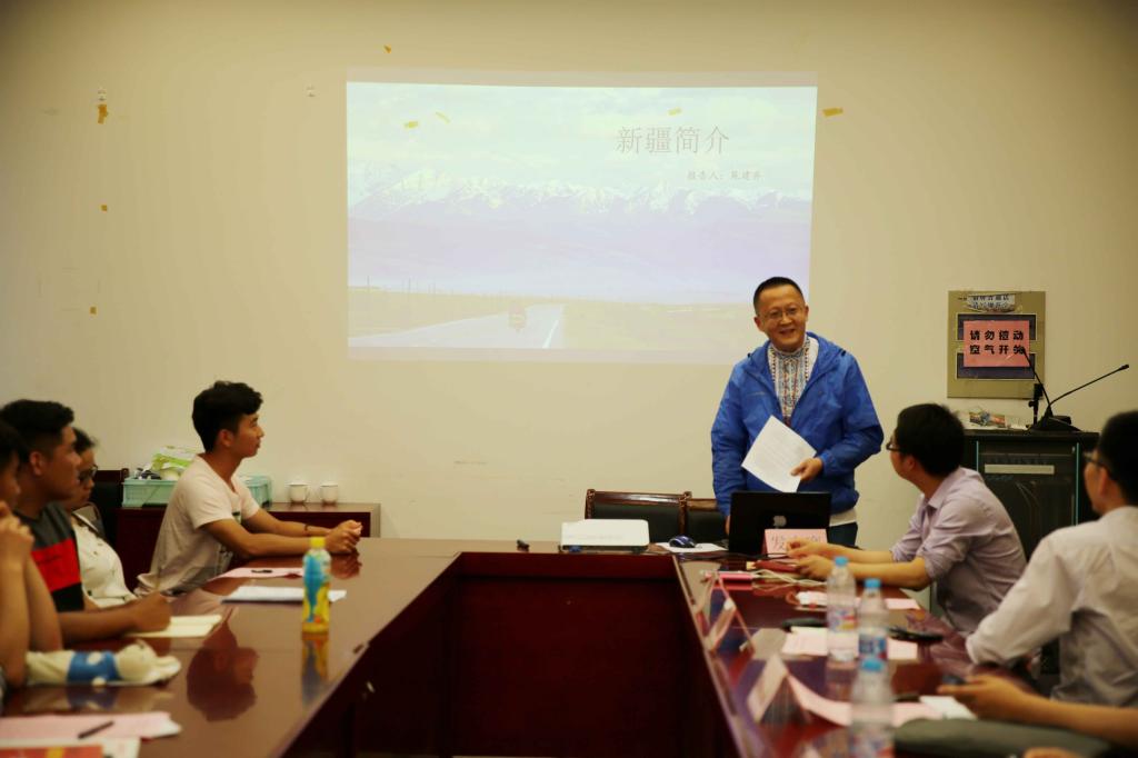 苑建齐向大家介绍了新疆概况,他从新疆的历史、文化、党和国家领导人关怀、民族团结、人文风情等多个方面让大家对新疆有了新的认识。苑老师特别指出,新疆是美丽的、安全的和富饶的土地,是中国不可分割的一部分,新疆各族同胞在党的领导下建设着更为靓丽的新疆。