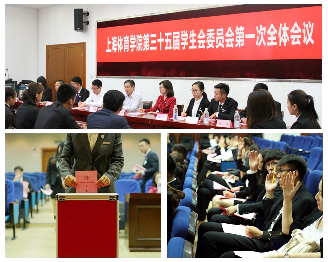 新当选的24名学生会委员在通过无记名差额投票选举,从8名主席团候选人中选出了6名主席团成员:张彦、赵阳、唐诗旸、唐颖、崔翔宇、董俊杰。本次主席团选举从通知发布起,经全校范围内报名、遴选、推荐、审查、笔试、面试及审核等之后,选出8名候选人,并提交大会审查及选举。