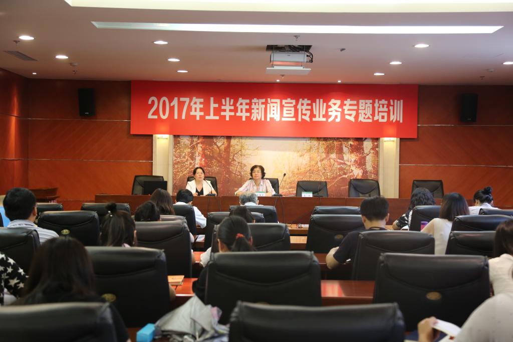本网讯6月1日下午,我校在图文信息楼第二会议室举行了2017年上半年新闻宣传业务专题培训,党委副书记、纪委书记詹萌出席并讲话,各二级学院党总支书记、各单位新闻宣传员参加了培训会。培训邀请体育新闻传播与外语学院副教授罗璇讲授校园新闻写作。培训会由宣传部部长匡淑平主持。