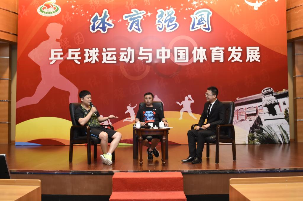 访谈中,刘志强围绕“冠军是怎样炼成的”,介绍了乒乓球人才选拔的标准、国家队队员的生活管理与思想建设、中国乒乓球何以长期“称霸”世界的秘密等大家关心的内容。访谈中,他强调中国乒乓球能够领先世界既需要有完善的选拔体系来进行层层的人才选拔,需要完整的团队保障机制如教练员团队、医疗团队、科研团队的辛苦付出,需要严格的国家队日常生活管理以及及时地给予队员的思想建设来增强国家荣誉感、集体荣誉感、使命感,更需要的是全体乒乓人的坚持不懈的努力与创新,创新是中国乒乓球长期保持世界领先的秘诀。最后,刘志强指导也寄语在座的大学生“人生能有几回搏,此时不搏何时搏?大家一起拼搏,来为祖国的繁荣贡献力量”。