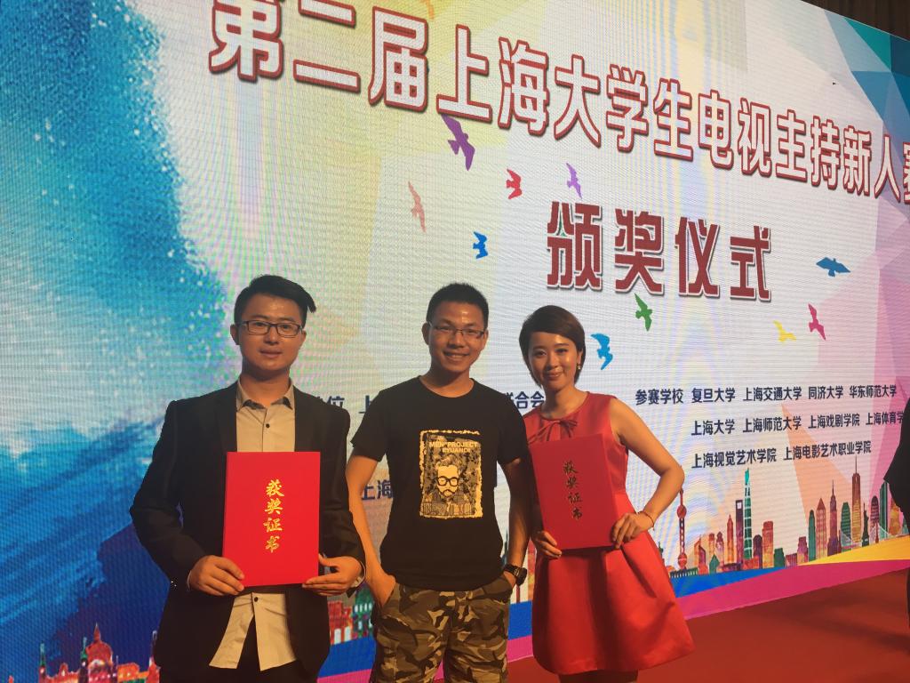 本网讯 由上海电视艺术家协会主办的第二届上海大学生电视主持新人大赛决赛于6月11日在上海市文联多功能厅落下帷幕。我校是唯一一支两名选手全部进入最终决赛的参赛队伍,最终,马斯曼、姚全同学凭借的出色发挥斩获本次大赛两枚银牌。