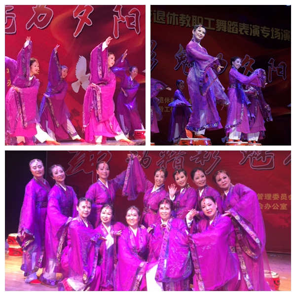 在平杰副院长关心下,我校退管会经过两个多月创编和排练,在节目的形式上,老同志们不走俗套大胆创新,编排的汉唐古典舞《相和鼓舞》,展现了汉唐文化的轻歌曼舞的壮观场景。情景诗朗诵《老了没什么不好》,主题鲜明乐观向上,朗诵和表演情景交融,文武兼备,很好地展示了体院退休员工文武兼蓄、丰富多彩的退休生活和积极阳光的健康心态,特别是原党委书记胡爱本教授和陆爱云教授充满情感、抑扬顿挫的朗诵;王培锟、曾美英二位武术大师的加入,为节目增添了光彩!我院退休教职工表演的舞蹈和朗诵节目高度赞美了老年人选择快乐生活,敢于挑战和超越自我的人生价值观,表达了“只要心态不老,夕阳更加红亮”的人生追求,赢得了观众热烈的掌声!