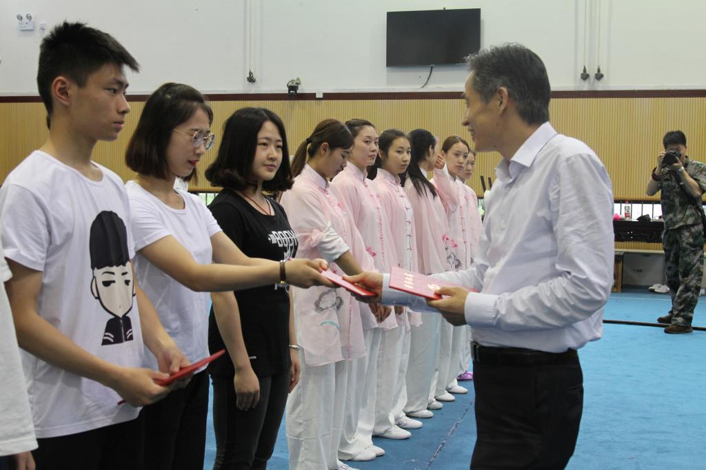 随后进行了2017年“五月的鲜花”全国大中学生文艺会演参演团队表彰仪式,陈晓峰为参演同学代表颁发了“校园文化贡献奖”荣誉证书,代表学校祝贺他们圆满完成了演出任务。