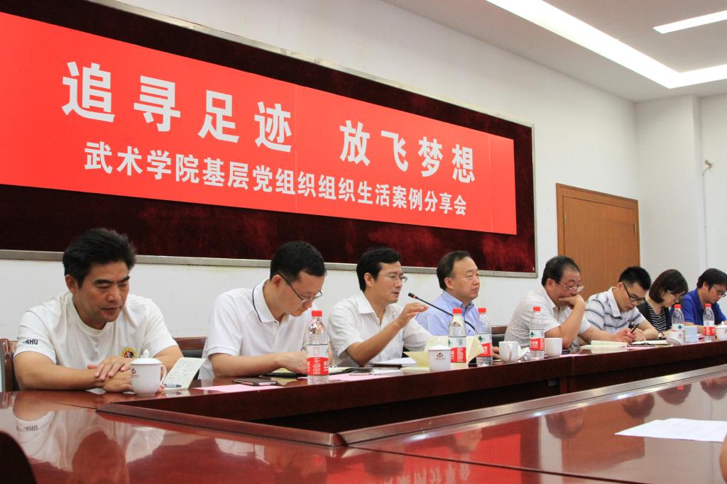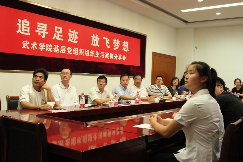 本网讯 7月5日下午,武术学院在学生活动中心二楼会议室举行基层党组织主题党日活动分享观摩交流会。上海体育学院组织部部长潘勤,学工部部长熊小健,宣传部副部长黄勇、团委书记梅朵、武术学院全体党员教师及学生党员参与了本次活动。分享会由武术学院党总支副书记、副院长程华主持。