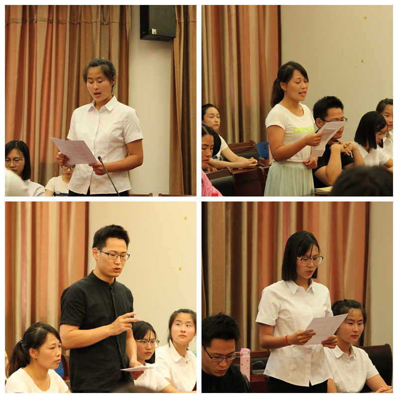 入党积极分子范珲同学讲述了第一次进社区活动时的兴奋,并分享了在此过程中感受到居委会工作人员面对自己的工作时饱满的热情和干劲。懂得了要创造自己的事业,就必须付出加倍的努力,就要凭着一个人对工作的执着,本着为人民服务的宗旨,坚定信念走向完美的事业之路。研究生党员张瑞同学生动的讲述了自己通过武益社这一平台,参加“德基金”走进广东雷州市进行艺术支教的经历,并希望自己短暂的支教时光可以在小朋友们心中种下一颗向往美好生活的种子。研究生党员谢婷同学以一封广西支教学校孩子的来信作为开头讲述了她与孩子们建立的深厚的友谊,以及在支教过程中自己的体悟和成就感。
