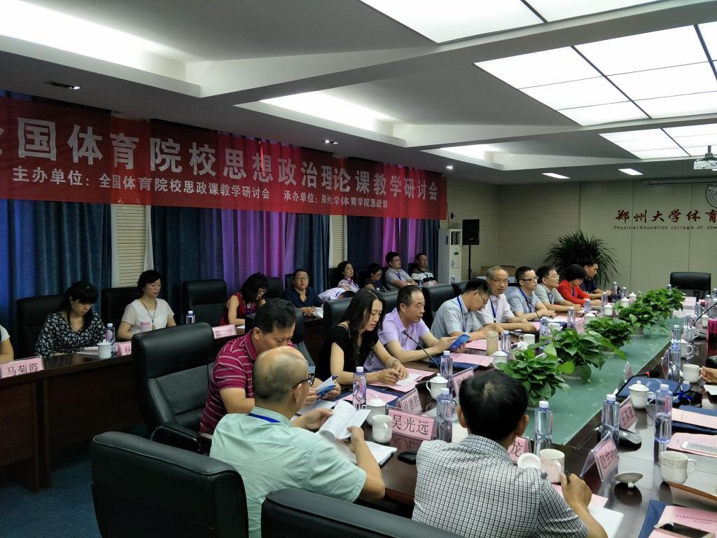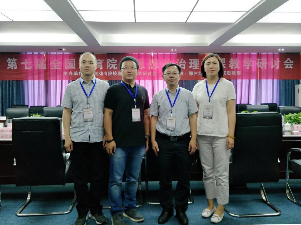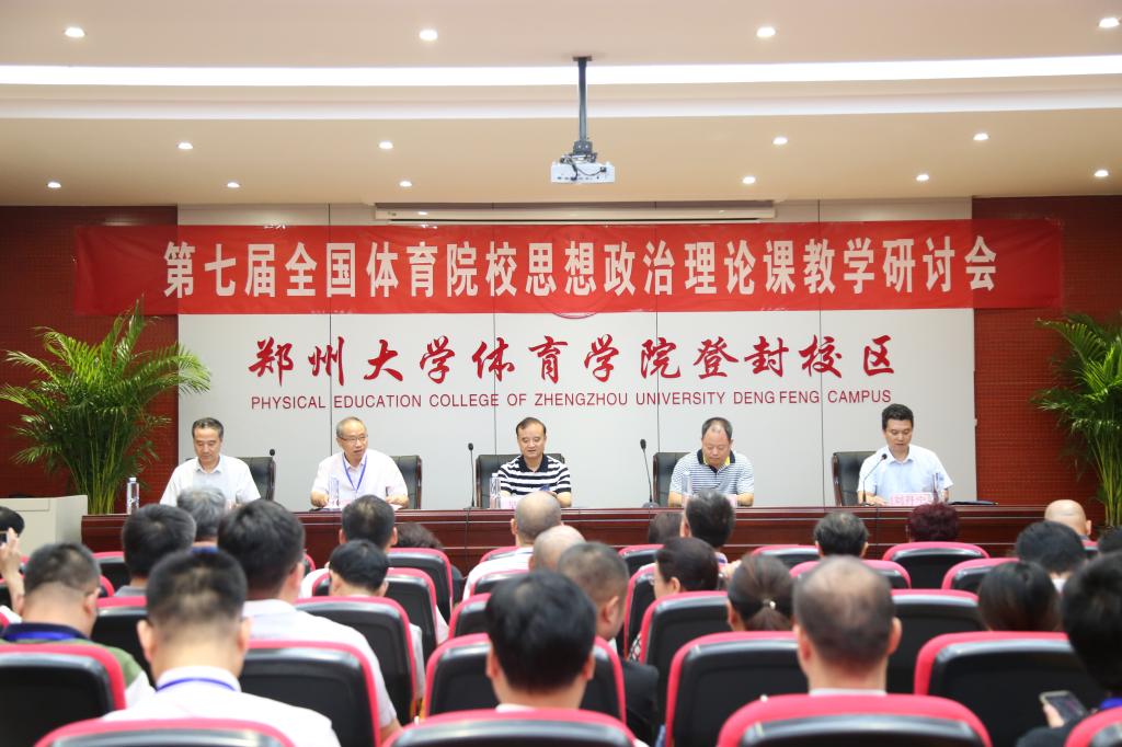 本网讯 7月3-4日,第七届全国体育院校思想政治理论课教学研讨会在郑州大学体育学院登封校区召开。郑州大学体育学院党委书记魏真、党委副书记刘丹宁、河南省体育局巡视员吴治国、河南省教育厅思政处处长李培俊等应邀出席了本次会议。我校思政部一行4人与全国14所兄弟体育院校思政部(马院)负责人和教师代表共45人参加会议。
