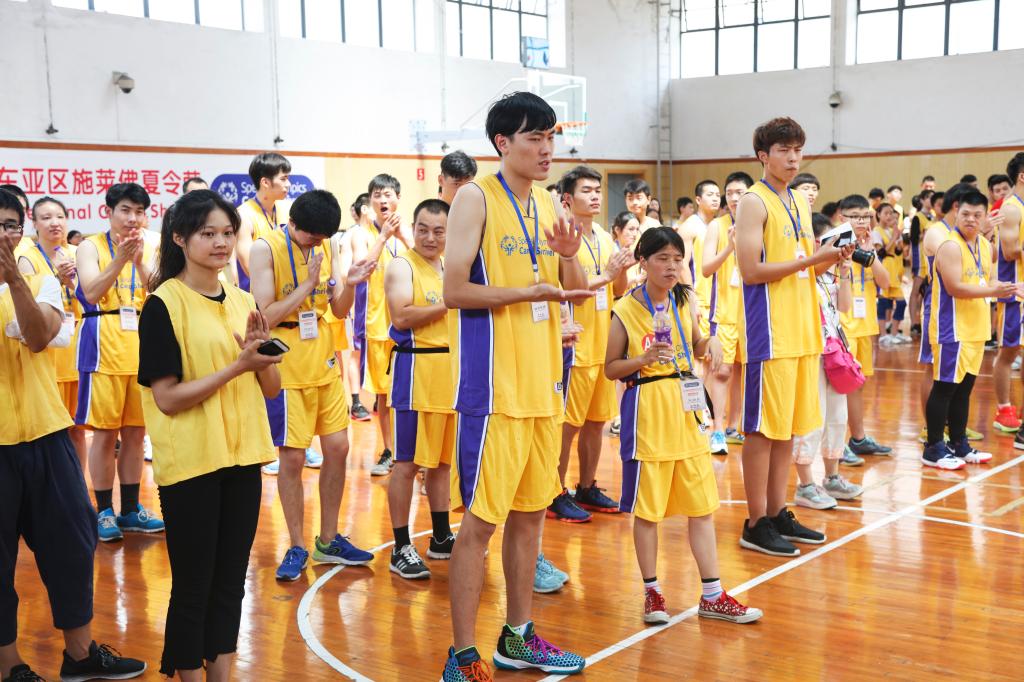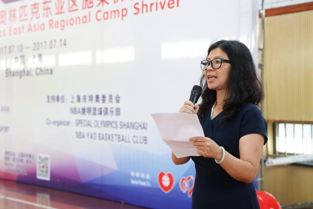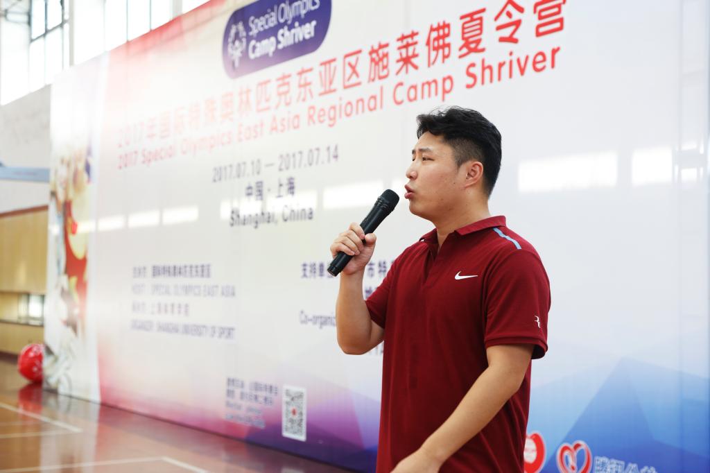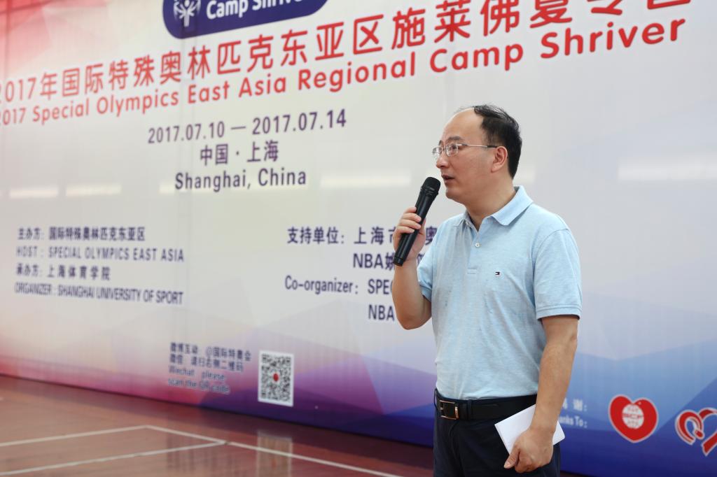 本网讯 7月10日上午,由国际特殊奥林匹克东亚区主办、上海体育学院承办、上海特奥委员会和NBA姚明篮球俱乐部支持的2017国际特殊奥林匹克东亚区施莱弗夏令营开幕式在我校篮球馆三楼举行。国际特殊奥林匹克东亚区体育总监成克伦,上海市残疾人体育训练中心主任柳瑾,残疾人事业发展研究会常务理事、上海体育学院科研处处长吴雪萍,上海体育学院体育教育训练学院党总支书记赵晓晗以及上海体育学院体育休闲与艺术学院院长李海出席开幕式。