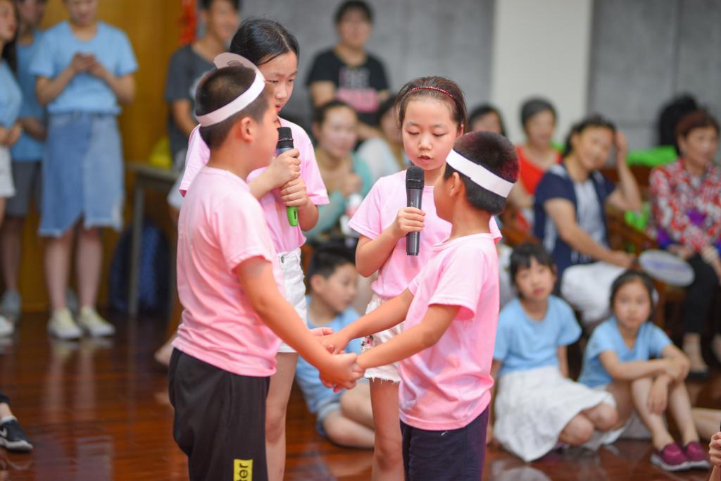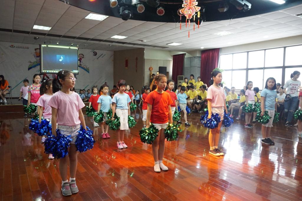 幼儿组的小朋友将自己所学习的英语单词、绘本故事与音乐相结合。小学组的营员通过进行情景剧表演、少林拳、啦啦操进行展示。汇报演出的最后一个节目是将中学组的舞龙、小学组的少林拳以及幼儿组的功夫熊猫结合在一起,营员们为大家带来了一场视觉的盛宴。