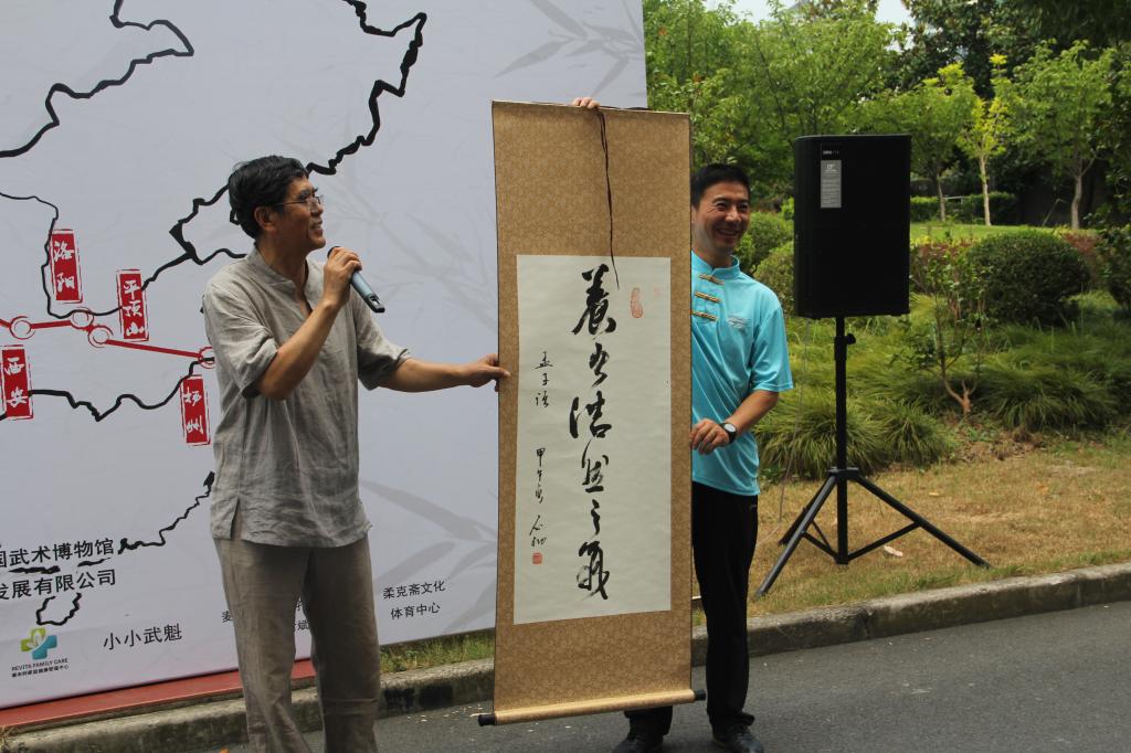 证大集团总裁戴志康先生作为赞助商代表,现场抽取幸运号码,将由邱丕相教授亲笔作品赠予幸运观众。上海体育学院教授、中国武术九段邱丕相作了简短致辞,他作为此次活动的主要发起人,希望通过“大篷车”这种新的形势宣讲武术、宣传武术,让社会大众能更好地关注武术,弘扬民族体育。最后,他拿起发令枪,鸣枪宣布出征正式开始。