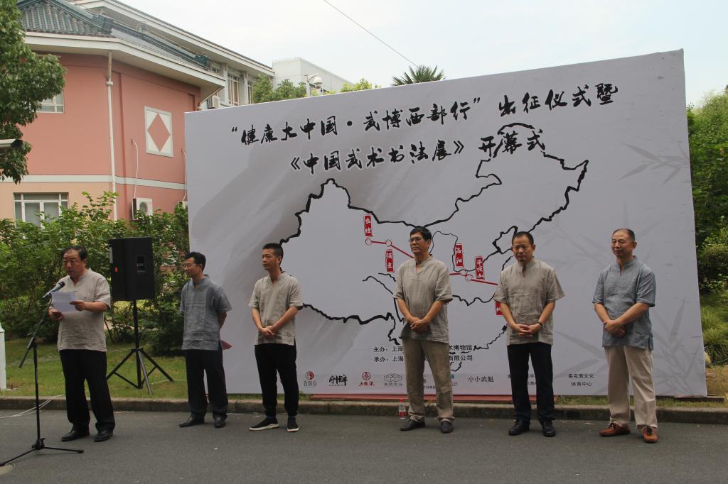 本网讯 7月18日,“健康大中国·武博西部行”中国武术文化宣讲活动出征仪式暨中国武术书法展在上海体育学院中国武术博物馆隆重举办。本次活动由上海体育学院武术学院主办,中国武术博物馆和上海大司田文化有限公司联合承办。上海体育学院武术学院院长、中国武术博物馆馆长戴国斌、上海体育学院武术学院党总支书记霍圣录、上海体育学院教授、中国武术九段邱丕相、数十位中国武术博士、十余家知名企业代表以及诸多武术爱好者出席出征仪式。仪式由霍圣录主持。