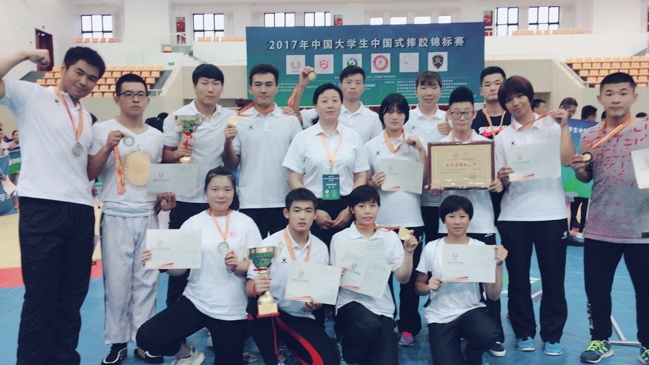 本网讯 8月9日,2017年中国大学生中国式摔跤锦标赛在上海建桥学院体育馆落下帷幕。本次大赛吸引了北京师范大学、西北大学、郑州大学、解放军石家庄机械化步兵学院、南京森林警察学院等在内的24所高校代表队的194名运动员和34名教练员参赛。经过三天的激烈角逐,我校学生不负众望取得4金5银5铜的优异成绩。