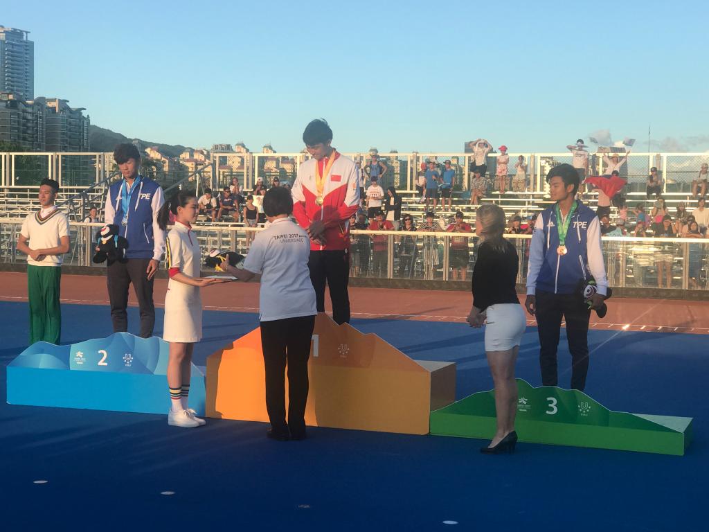 本网讯 8月25日下午,在台北举行的第29届世界大学生运动会自由式轮滑速度过桩项目中,我校学生潘宇烁战胜中华台北选手成功登顶,为中国代表团本届世大运之行拿下首金。