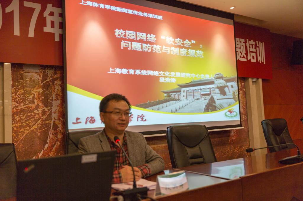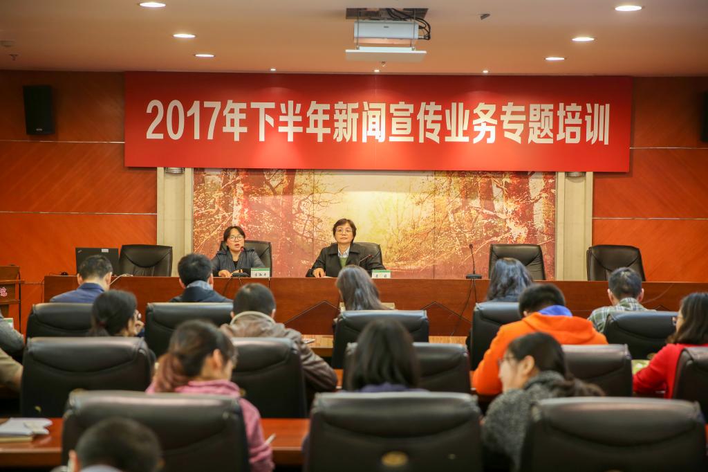 本网讯 在党的十九大召开之际,为贯彻落实大会精神,进一步加强本校新闻宣传业务,我校2017年新闻宣传员队伍在10月19日下午于图文信息楼第二会议室举行了“2017年下半年新闻宣传业务专题培训”。党委副书记、纪委书记詹萌出席培训活动,上海教育系统网络文化发展研究中心负责人段洪涛为各新闻宣传员进行了相关专业方面的指导,党委宣传部部长匡淑平主持会议。
