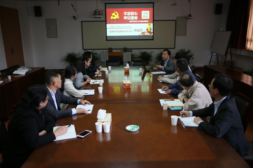 本网讯 10月20日,机关党总支在图文信息楼四楼会议室召开习近平总书记十九大报告精神学习会,集中学习和讨论十九大报告精神。全体总支委员、党支部书记参加学习会,学习会由机关党总支书记潘勤主持。