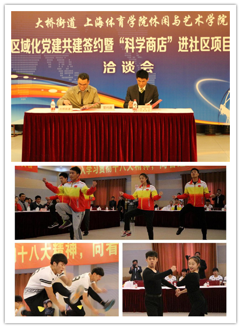 通过进一步深化区域化党建工作,创新参与杨浦区大桥街道“学习修身行,精彩桥文化”的群众体育文化周活动。与上海市首先实施体育与医疗相结合促进居民身体健康的首个试点的街道--四平街道开展体医融合试点工作,利用自身的专业优势,服务社区居民,在传播体育知识与文化的同时,将社会主义核心价值观浸润锻炼了学生实际服务基层的能力,强化了学生公益服务的信念。