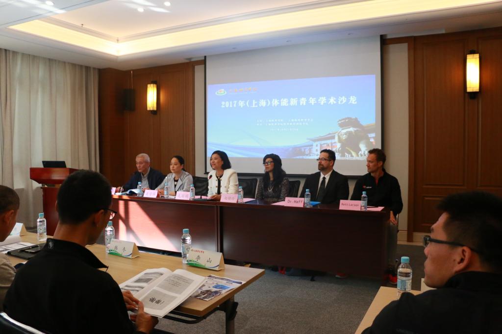 本网讯10月28日,由上海体育学院、上海体育科学学会主办,上海体育学院体育教育训练学院承办的2017年(上海)体能新青年学术沙龙在我校举办,本次沙龙主题为“力量训练在体能训练中的重要性”。上海体育学院副副院长毛丽娟,科研处处长吴雪萍,体育教育训练学院院长丁海勇、党总支书记赵晓晗出席活动,特邀嘉宾为美国体能协会主席Greg Haff与中国国家女子排球队体能教练Rett Larson。活动开幕式由丁海勇院长主持。
