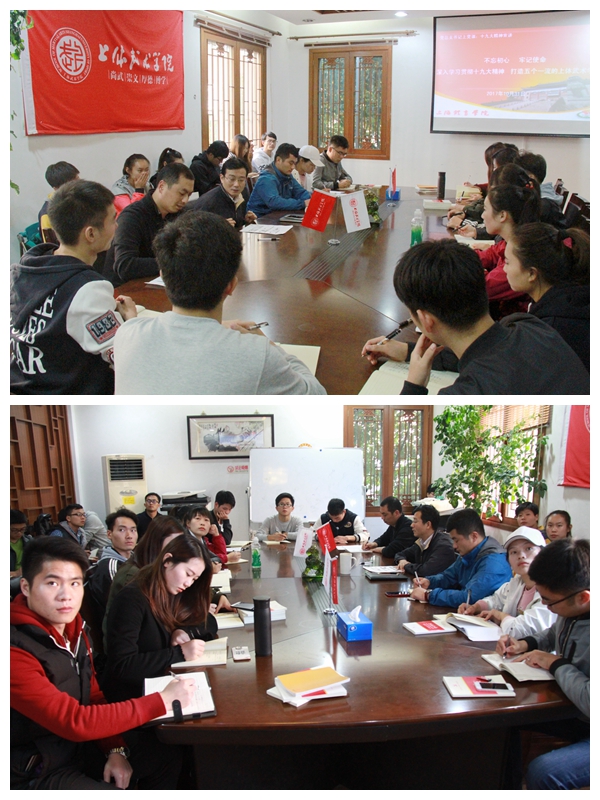 本网讯 在十九大胜利闭幕之际,为进一步学习贯彻党的十九大会议精神,团结引领武术学院全体师生听党话、跟党走,进一步强化“四个意识”,增强“四个自信”,10月31日下午四点,武术学院党总支书记霍圣录为全院学生党员召开了一场以“不忘初心、牢记使命——深入学习贯彻十九大精神,打造五个一流的上体武术学院”为主题的十九大专题党课。