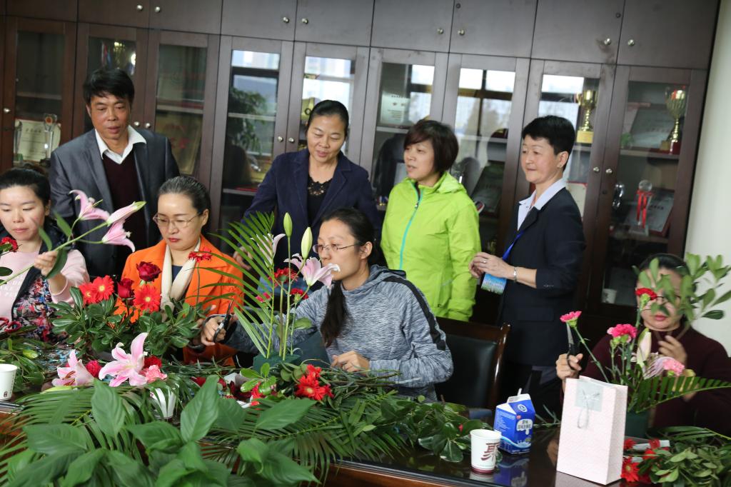 本网讯 11月10日中午,学校教职工花艺协会在工会五楼会议室举办了“以花会友,香满上体”为主题的迎校庆插花活动,吸引了近30名会员参加。