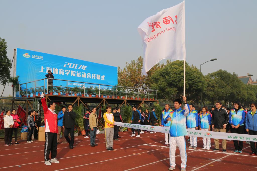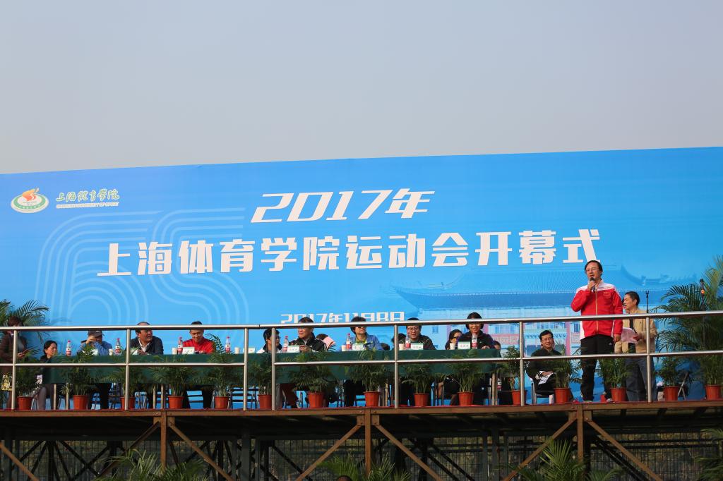 本网讯 11月8日上午8时,我校2017年校庆运动会开幕式在东田径场举行。党委书记戴健,党委副书记、院长陈佩杰,党委副书记、副院长陈晓峰,党委副书记、纪委书记詹萌,副院长平杰、施之皓、王兴放,以及各二级学院领导和学院各机关部处的领导出席开幕式。开幕式由副院长毛丽娟主持。戴健宣布2017年上海体育学院校庆运动会开幕。