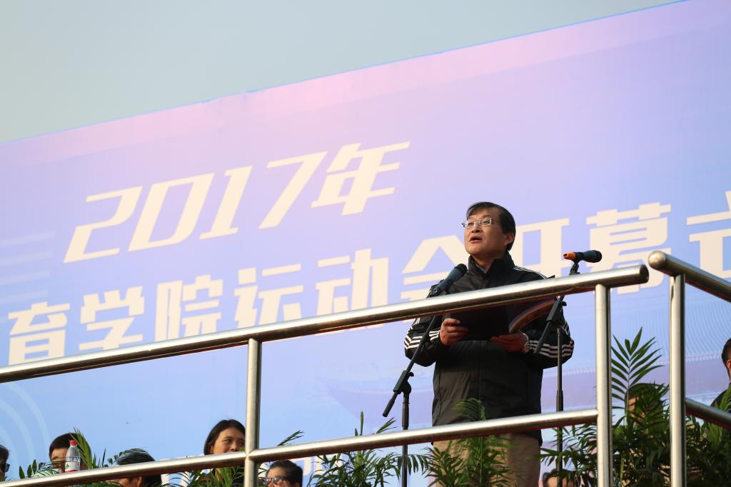 各代表队就位后,陈佩杰致开幕词,他指出,2017年是全运会之年,学校训练竞赛收获颇丰,我校学子在国内外多个重大赛事中取得优异成绩。上海体育学院以创建世界一流体育大学为目标,以深化教育综合改革为契机,在教学、科研、竞赛和服务社会等方面均取得了长足进步,学校在改革发展的征程中,始终秉持“发展体育运动、增强人民体质、弘扬体育文化”的光荣使命,培养了大批中国体育栋梁之才。他对学校运动会的胜利召开表示热烈祝贺,对为本届运动会付出辛勤劳动的全体工作人员表示衷心感谢。他希望全体裁判人员本着“客观、公平、公正”的态度,严守规程,公正裁决,确保比赛顺利进行;希望全体工作人员忠于职守,热情服务,全力保障运动会圆满成功。
