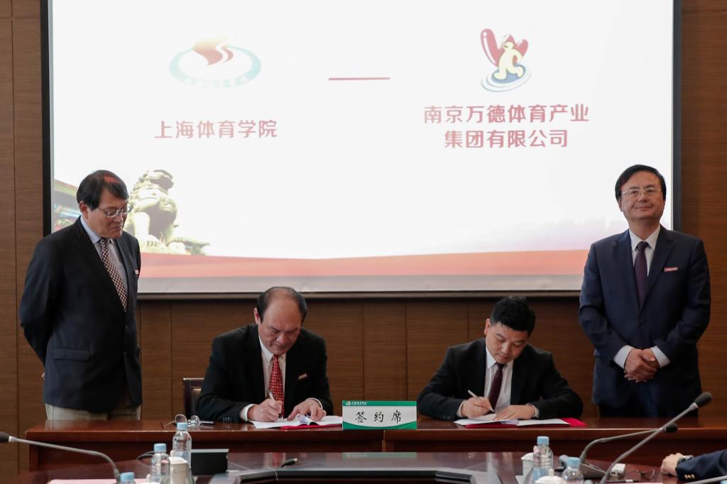 随后,平杰代表上海体育学院分别与安踏体育、阿里体育、莱茵体育、南京万德体育产业集团、上海紫竹置业(集团)有限公司、万达信息股份有限公司签订校企战略合作协议。