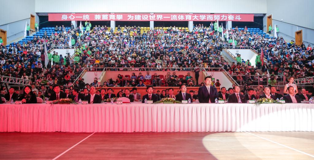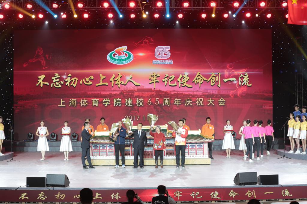 本网讯 在全国上下深入学习宣传贯彻党的十九大精神,阔步迈向中国特色社会主义新时代之际,上海体育学院迎来了65华诞。11月11日上午,学校综合馆内气氛热烈而隆重,海内外嘉宾和校友、兄弟院校代表、在校师生代表、离退休老同志、广大校友、各界宾朋欢聚一堂,共同庆祝上海体育学院建校65周年。