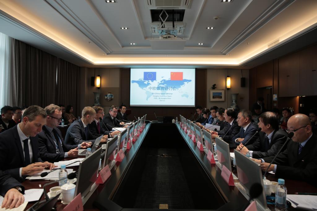 本网讯 11月15日下午,中国—欧盟高级别人文交流对话机制第四次会议(以下简称中欧对话)体育研讨非正式座谈会在我校举行。党委书记戴健、副院长王兴放出席座谈会。参会的中外嘉宾有欧盟委员会教文总司体育处处长乐·罗斯戴克,爱沙尼亚文化部副秘书长塔维·朴恩,匈牙利前总统、国际奥委会委员帕尔·施密特,国际中学生体联主席劳伦·佩特林卡,法国国家体育运动学院高水平竞技系主任帕蒂·豪尔特,卢森堡体育部国际和欧盟事务顾问亚历山大·霍斯汀,国际教练员发展理事会经理拉腊·波切尔,比利时鲁汶大学教授蒂埃里·钦茨,中国国家体育总局竞体司副司长杨善德,国家体育总局外联司张越頔,上海申花足球俱乐部总经理助理严翔等。