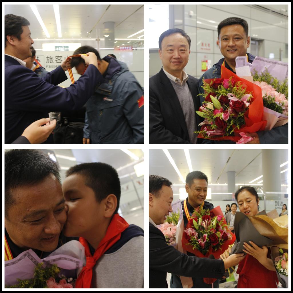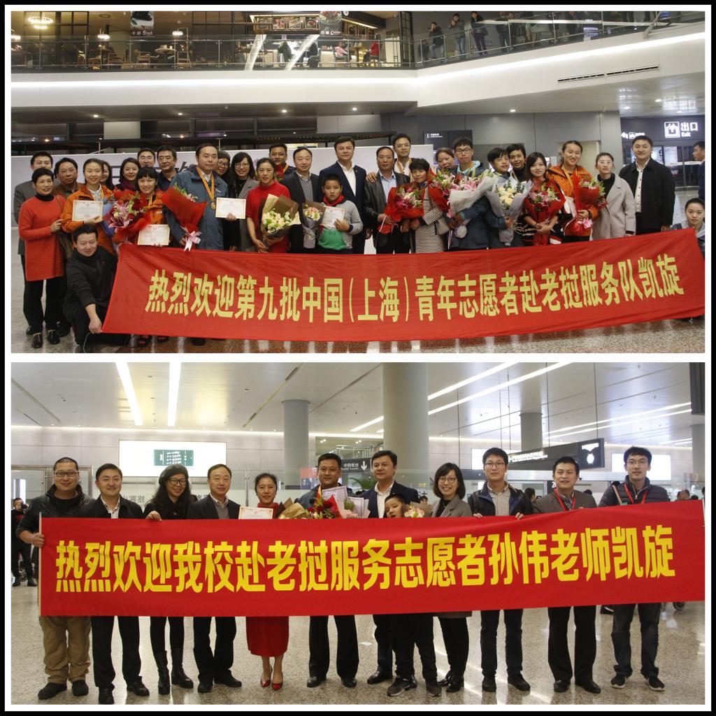 本网讯 11月17日晚八时许,第九批中国(上海)青年志愿者赴老挝志愿服务队队员、我校体育教育训练学院教师孙伟,圆满完成服务任务,抵达上海虹桥机场。团市委副书记刘刚,我校党委副书记、组织部部长潘勤亲赴机场迎接,体训学院党总支书记赵晓晗,团委书记、学工部副部长梅朵及其家人林斌等参加迎接活动。