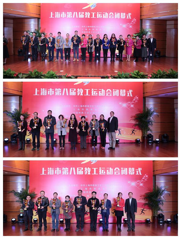 本网讯 11月24日下午两点,上海市第八届教工运动会闭幕式在我院图文信息楼一楼报告厅举行。上海市教卫党委副书记、教育工会主席成旦红,上海体育学院党委副书记、院长陈佩杰,党委副书记潘勤,上海市第八届教 工运动会组委会秘书长、上海市教育委员会体卫艺科处处长丁力,上海市教育工会副主席吉启华出席闭幕式。