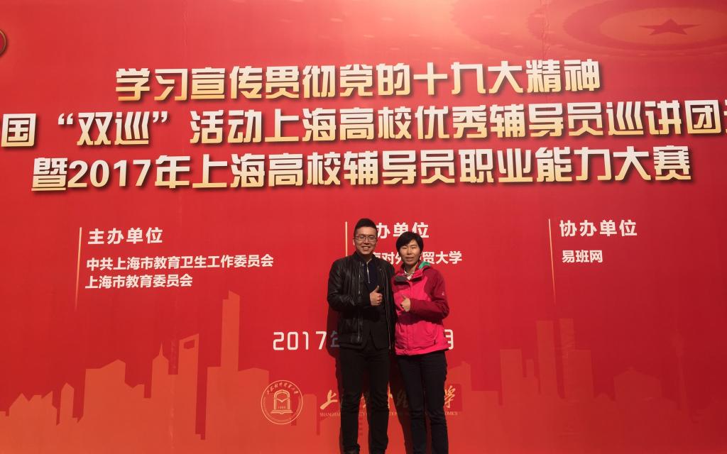 12月2日,由中共上海市教育卫生工作委员会和上海市教育委员会主办、上海对外经贸大学承办、易班网协办的“学习宣传贯彻党的十九大精神——全国‘双巡’活动上海高校优秀辅导员巡讲团选拔赛暨2017年上海高校辅导员职业能力大赛”决赛在上海对外经贸大学圆满落幕。经过激烈角逐,我校辅导员徐振、杜恺双双获得三等奖,成为我校在此项比赛中获得的最好成绩,也是我校辅导员队伍建设成果的集中展示。