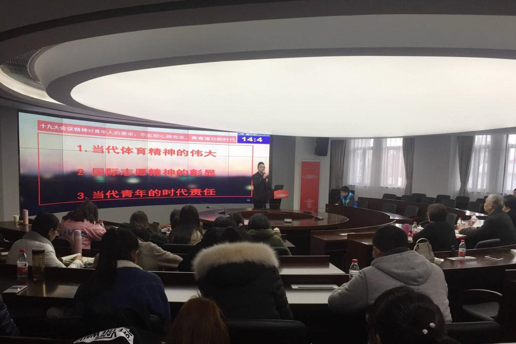 在比赛中,徐振老师以《百年家国史光辉复兴路》为题,从蔡龙云大师1943年战胜俄国拳手马索洛夫挺起了民族的脊梁的故事讲起,讲述分享了一百多年来民族与国家的兴衰荣辱,尤其阐述了十八大以来国家的发展与变化,并落脚于青年理想应与国家理想相结合,在初心中找理想,在斗争中显担当,不忘初心,牢记使命。杜恺老师以《体育强则中国强国运兴则体育兴》为题,从当代体育精神的伟大、国际志愿精神的彰显、当代青年的时代责任三个方向与在座师生分享了我校被习总书记点赞的零薪酬国家队主教练、国际青年志愿者孙伟老师的故事。