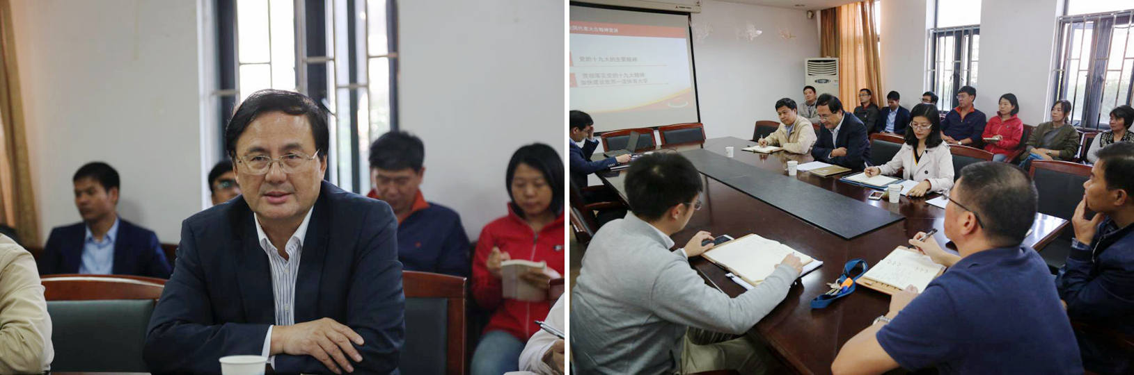 本网讯 连日来,经济管理学院学习贯彻十九大精神的热潮持续升温。全院各级党组织和广大师生把学习宣传贯彻党的十九大精神作为当前首要政治任务,通过班子成员带头学、创新形式深入学、推动工作结合学等多种形式,组织开展了系列学习贯彻活动,进一步理解十九大报告中提出的一系列新思想、新论断、新提法、新举措,不断将师生对新时代中国特色社会主义思想的理解和认识引向深入。