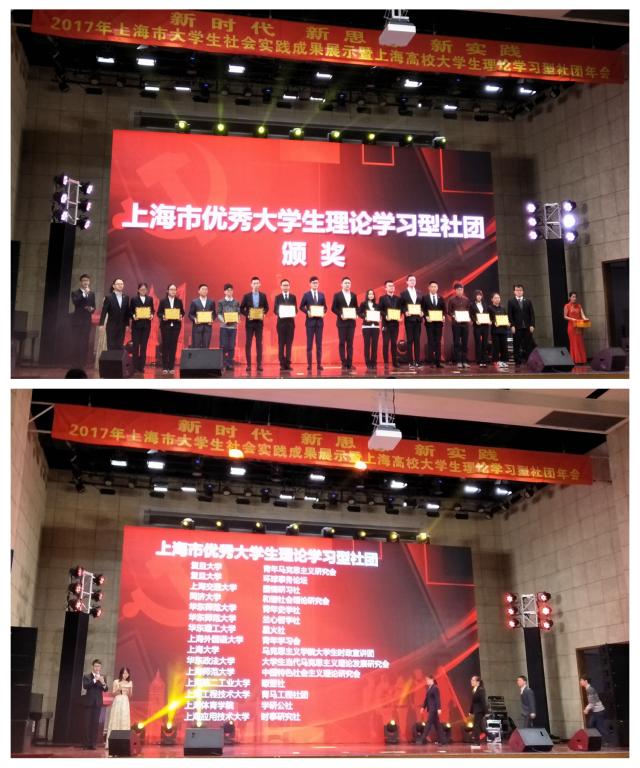 本网讯 12月8日上午,2017年上海市大学生社会实践成果展示暨上海高校大学生理论学习型社团年会在华东政法大学松江校区礼堂举行,活动的主题为“新时代,新思想,新实践”,传承青年历史使命,彰显学子青春风采,我校获奖师生代表参加了此次大会。