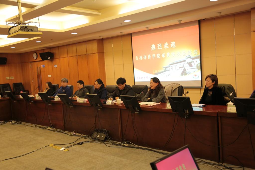 王兴放副院长代表学校对吉林体育学院代表团的到访表示热烈欢迎,并介绍了学校建设发展情况。会上,双方就专业建设、人才培养、实训体系建设、毕业生就业、冰雪学院的建设等工作进行了交流座谈。