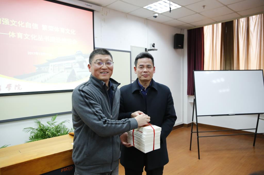 各位与会教授、专家以及各职能部门负责人围绕体育文化丛书建设各抒己见,展开了热烈的讨论。大家普遍认为,“体育文化系列丛书”体现了我校内涵建设的先锋性和引领性,在体育学术界走在了前列,适应当下中国文化发展潮流,体现了一流体育大学的办学水平。与此同时,各位专家学者也为“体育文化系列丛书”未来的发展方向和选题提出了自己的设想。随后,“体育文化系列丛书”专著作者代表向学校图书馆以及参会学生举行了赠书仪式。