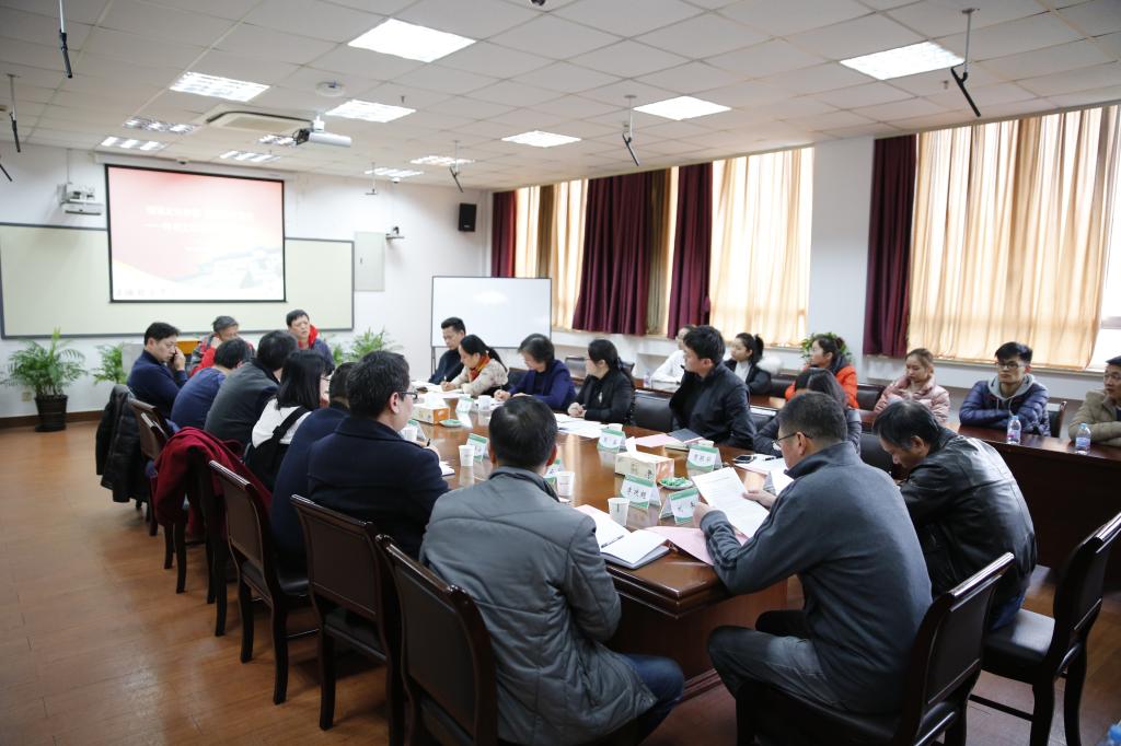 本网讯 12月27日下午,“增强文化自信 繁荣体育文化”——体育文化丛书建设推进会在图文信息楼四楼会议室举行,党委副书记、纪委书记詹萌,上海人民出版社党委副书记何元龙,党委宣传部部长兼思政教研部主任匡淑平,科研处处长吴雪萍,图书馆馆长张庆文,体育新闻传播与外语学院党总支书记张盛,档案馆副馆长贾颖华,“体育文化系列丛书”专著作者以及学生代表出席会议。会议由匡淑平主持。