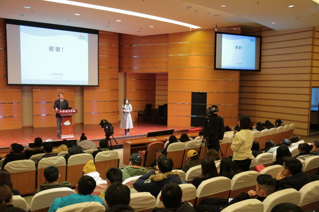 本网讯 1月3日下午,学校中国系列“体育强国”课程最后一讲,在图文信息楼报告厅精彩开讲。党委副书记、院长陈佩杰为师生作了关于《从儿童青少年体育健身指数看我国学校体育》的课程讲授。陈佩杰运用调查法和数理统计法从环境、行为和效果三个维度对儿童青少年体育健身发展现状作了分析,从健身环境,健身行为,健身效果三个层面七大分区进行解读评估,以总体上处于被动状态、行为需改善、环境待优化等视角厘定当前存在问题,并从思想认识、体制机制、学校体育、社区体育、政策制定五个方面提出合理建议、指明发展路向。陈院长高远而富有现实感的立意,独到而精辟的见解,层层递进逻辑缜密的论证,亲和而幽默的语言风格给在场师生留下了深刻印象。