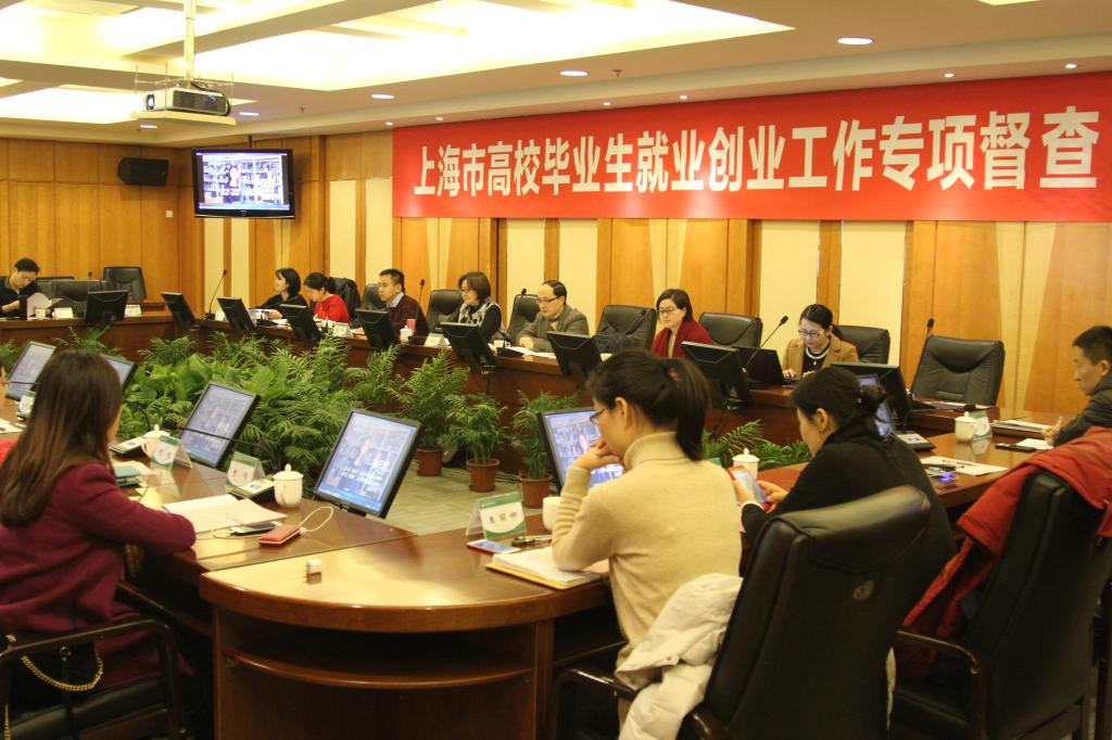 本网讯 1月10日下午,上海市高校毕业生就业创业工作专项督查组一行七人在东华大学党委副书记、副校长刘淑慧及上海市教委学生处副处长吴能武的带领下,来我校进行专项督查。党委副书记、副院长陈晓峰,人事处、教务处、财务处、资产管理处等相关部门负责人及各二级学院代表参加会议。
