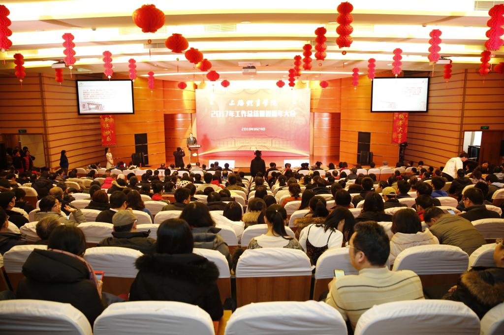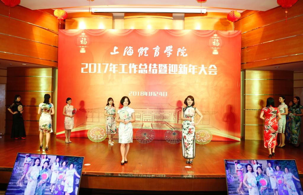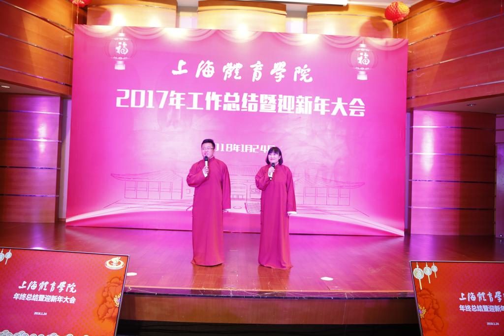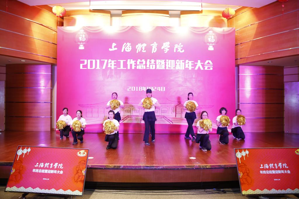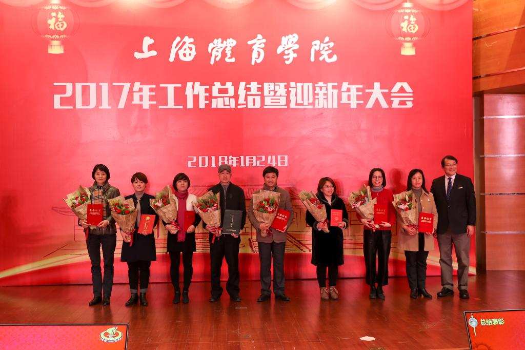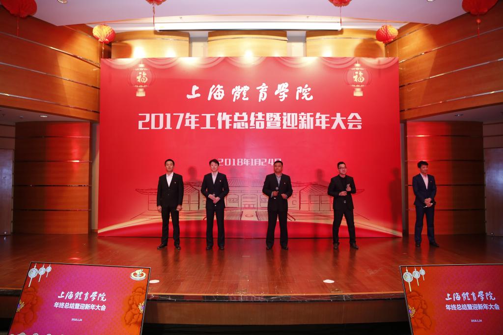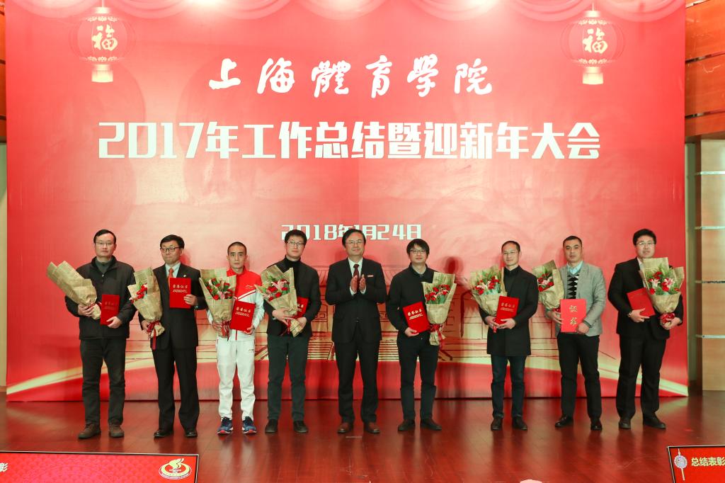 本网讯 1月24日下午,上海体育学院2017年工作总结暨迎新年大会在图文信息楼报告厅隆重举行。党委书记戴健发表新年贺词,党委副书记、院长陈佩杰作2017年学院工作总结报告,校领导、离退休老干部代表共同出席大会,并与全校教职工一起观看了迎新年节目演出。校领导为在2017年我校做出突出贡献的先进集体和个人代表颁发了奖状。2017年度学校十大新闻也在会上揭晓。