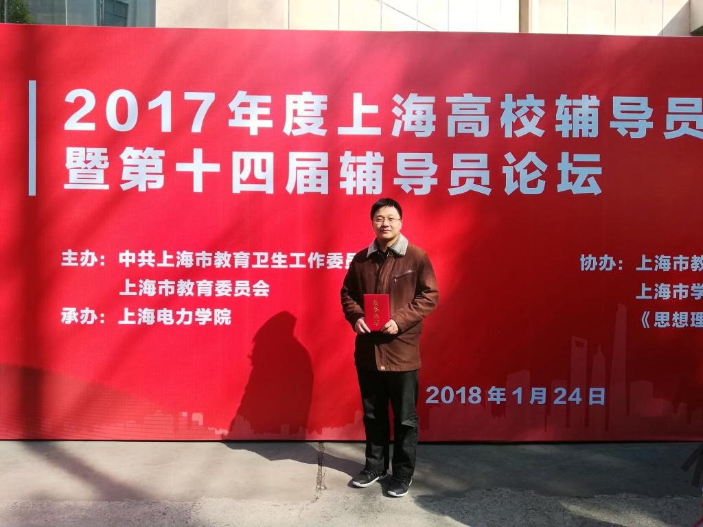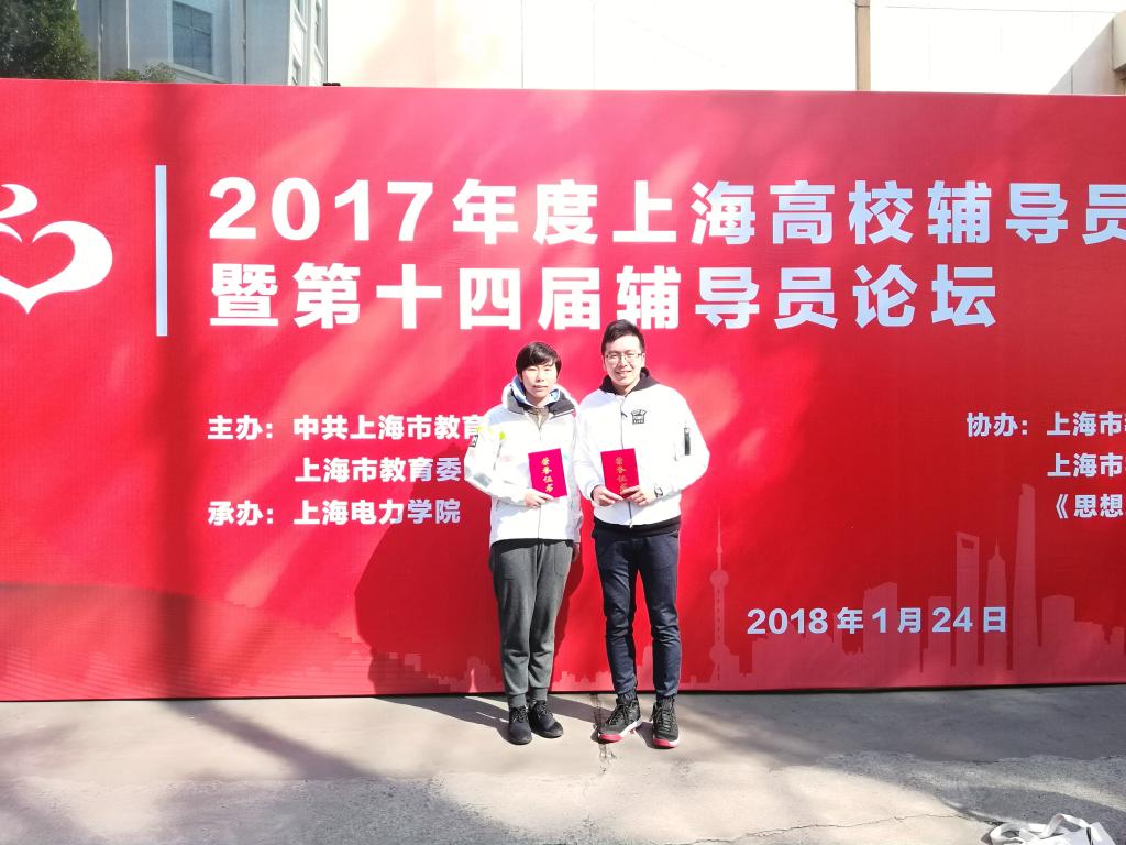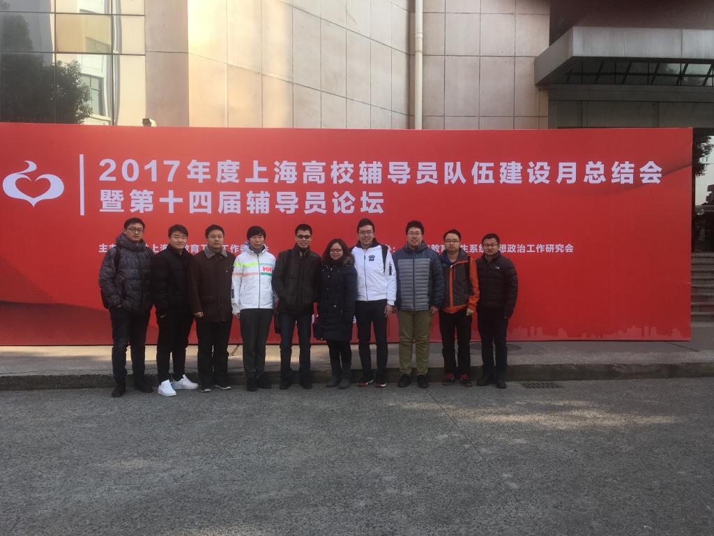 本网讯1月24日,由上海市教卫工作党委、上海市教委主办的“2017年度上海高校辅导员队伍建设月总结会暨第十四届辅导员论坛”在上海电力学院举行。会议展示了2017年度上海高校辅导员队伍建设月所取得的丰硕成果,并进行了第十四届上海高校辅导员论坛、2017年上海高校辅导员职业能力大赛与2017上海高校辅导员年度人物的颁奖。我校由学工部部长熊小健、研工部部长殷勤带队参加此次会议。